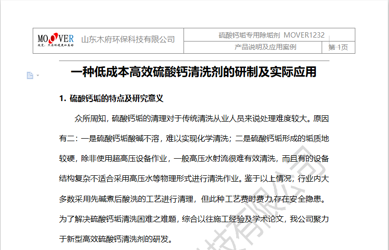 一種低成本高效硫酸鈣清洗劑的研制及實際應用