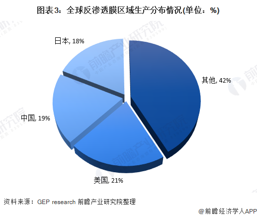目前,美國、中國和日本和是反滲透膜最重要的生產國家,3個國家的總產量占全球總產量的比重接近60%。其中,美國、中國和日本位居前三位,占比分別為21%、19%和18%。