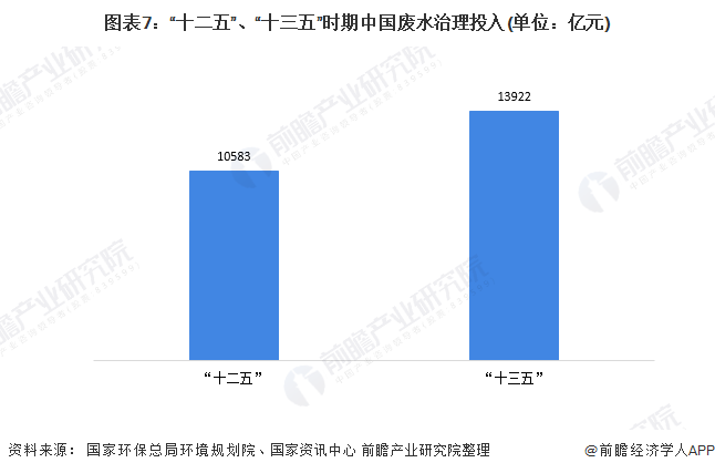 同時,在財政投入方面,據(jù)國家環(huán)??偩汁h(huán)境規(guī)劃院和國家資訊中心的分析預(yù)測,“十二五”和“十三五”期間我國廢水治理投入(含治理投資和運行費用)合計將分別達到10583億元和13922億元,其中用于工業(yè)和城鎮(zhèn)生活污水的治理投資將分別達到4355億元和4590億元。