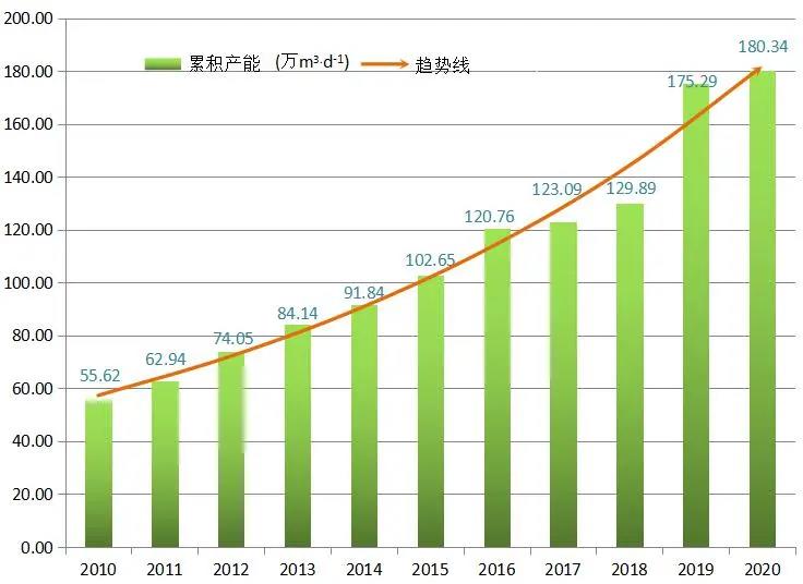圖5 2010-2020年全國已建成海水淡化工程累積產能