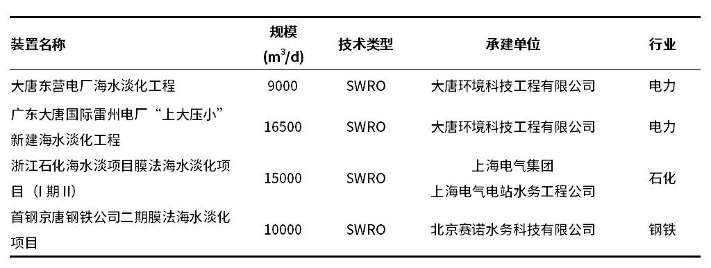 表1 2020年全國新建成的海水淡化項目
