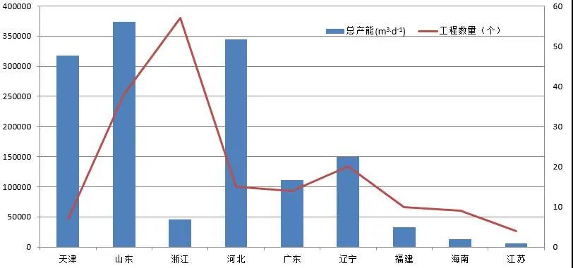 圖7 全國沿海省市海水淡化工程分布
