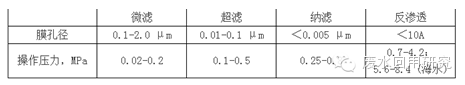 表2-1 膜法工藝適用范圍與特點