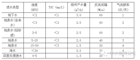 注:如原水為地表水,應在反洗水中加入NaClO,并控制反洗排放水余氯濃度為3-5mg/L。