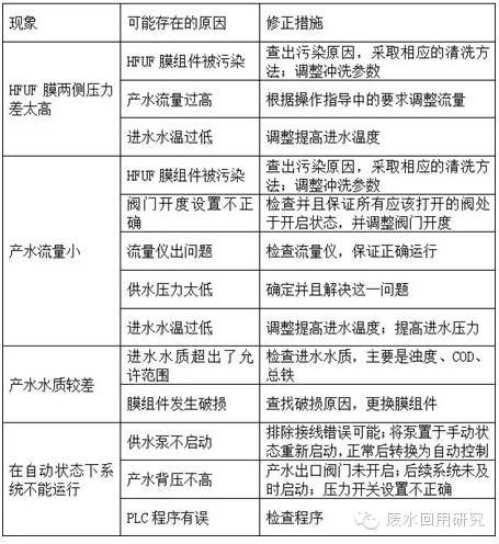 如果維護方法正確,且操作壓力低于0.6MPa的最大操作壓力,HFUF組件不會發生泄漏。一旦發生泄漏事故,必須立即關閉裝置。關機后,檢查漏水裝置,并予以排除,爾后裝置再次加壓試水。